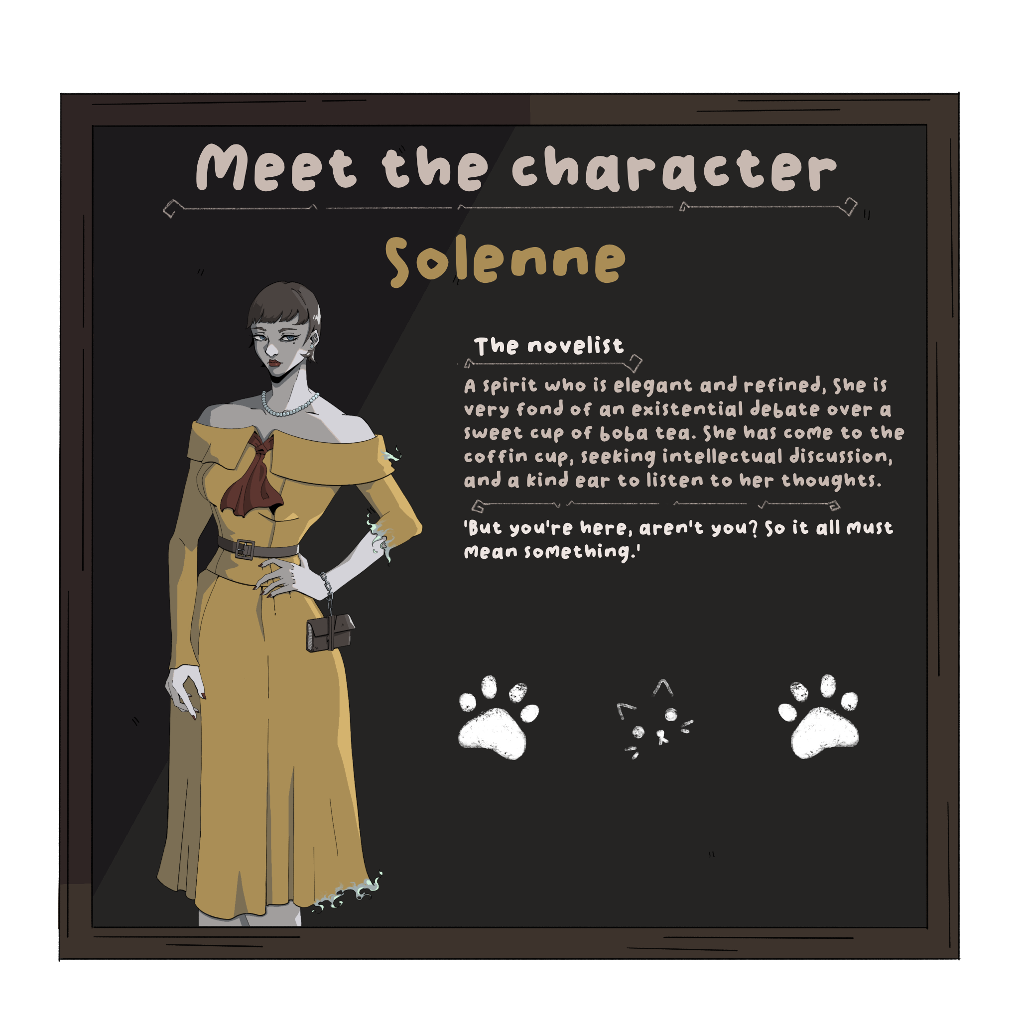 Welcome to Coffin Cup, a cosy café nestled at the edge of the afterlife, where ghostly guests come in for comfort, warm meals and a listening ear. its up to you to serve food, uncover hidden memories and help spirits find peace - if they want to.